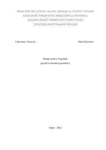 - Сисоєва, С.О. (orcid.org/0000-0003-2499-732X) and Батечко, Н.Г. (2011) Higher education in Ukraine: the realities of modern development Project Report. ВД ЕКМО, м. Київ, Україна.