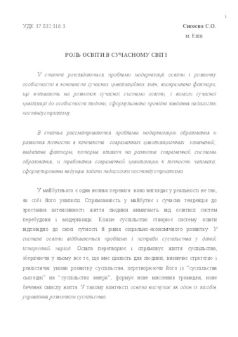 - Сисоєва, С.О. (orcid.org/0000-0003-2499-732X) (2008) The role of education in the modern world Рідна школа, 11. pp. 3-6. ISSN 0131-6788