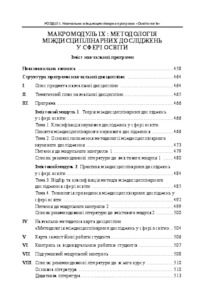 Educational discipline "Methodology of interdisciplinary research in education" is made in accordance with the requirements of credit and modular system of training organization and is the last (eighth) macromodule of interdisciplinary educational course "Educology".