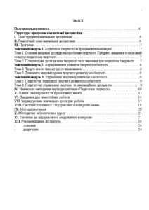 The curriculum program on the discipline "Pedagogy of Creativity" is the normative document of the Boris Grinchenko Kyiv University, which is developed on the basis of an educational and professional program of preparation of master's degree in accordance with the curriculum of the specialty 8.180110021 "Pedagogy of the Higher School" of full-time education.