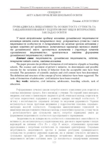 The paper presents the problem of formation of civil initiative of pupils at boarding schools. The essence and content of person’s initiative, its determinants and possible reasons for the variations in forms of behavior from the acceptable ones have bene revealed. The parameters of scientific analysis and civil content have ben determined. The definition and structure of the concept of «civic initiative» have been suggested. The tasks of formatrion of adolescents’ civil initiative have been revealed.