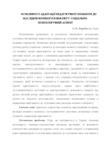 | Keywords: | adaptation, pedagogical community, adaptation potential, consequences of armed conflict, post-traumatic growth, activation of community efforts, increase of adaptability. |