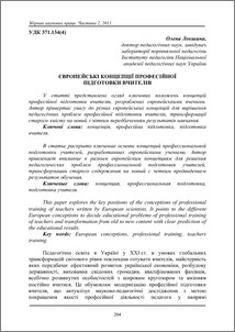 У статті представлено огляд ключових положень концепцій професійної підготовки вчителів, розроблених європейськими вченими. Автор привертає увагу до різних європейських концепцій для вирішення педагогічних проблем професійної підготовки вчителів, трансформації старого змісту на новий з чітким передбаченням результатів навчання.