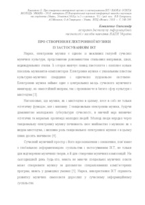 The publication considers the peculiarities of the creation of electronic music with the use of ICT.
