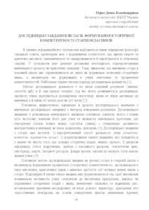 The theses reveal the main methodological requirements for the formulation of the terms of research tasks and give recommendations on their use in the process of teaching history. The role of research tasks in forming the historical competence of senior pupils is revealed.