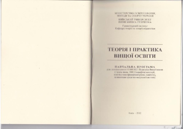 - Сисоєва, С.О. (orcid.org/0000-0003-2499-732X) (2012) Theory and practice of higher education [Teaching Resource]