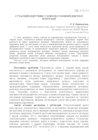 - Барановська, Олена Володимирівна (2017) A modern textbook in the light of intersubject integration Проблеми сучасного підручника (19). pp. 5-12. ISSN 2411-1309