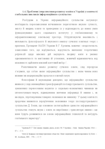 Отич, О.М. (2018) Problems and prospects for the development of education in Ukraine in the context of the global challenges of the information society . Вид-во Ін-ту обдарованої дитини НАПН України, м. Київ, Україна, pp. 44-51.