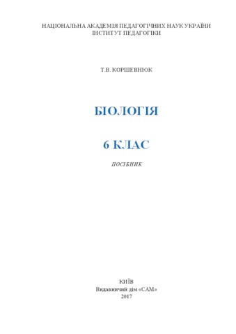 Коршевнюк, Т. В. (orcid.org/0000-0003-0430-5808) (2017) Biology. Grade 6 . Видавничий дім «Сам», м. Київ, Україна. ISBN 966-8714-33-4