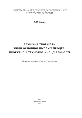 Тарара, Анатолій Михайлович (2014) Technical creativity of pupils of the main school in the process of design and technological activities . Педагогічна думка, м. Київ, Україна. ISBN 978-966-644-370-3