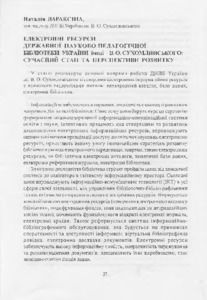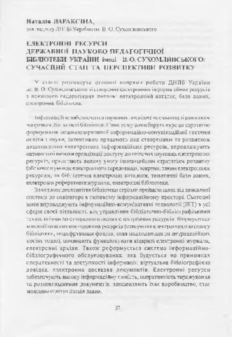 - Вараксіна, Наталія Володимирівна (orcid.org/0000-0002-0333-5186) (2008) Electronic resources of the State Scientific and Pedagogical Library of Ukraine by V. A. Sukhomlinsky: current state and development prospects Наукові праці Національної бібліотеки України імені В. І. Вернадського (22). pp. 37-45. ISSN 2224-9524