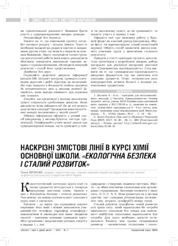 - Вороненко, Т. І. (2018) Cross-through content lines in the chemistry course of the secondary school. "Ecological security and sustainable development" Біологія і хімія в рідній школі, 3 (126). pp. 12-18.
