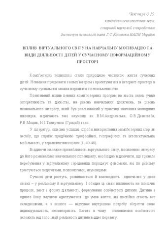 Стаття_ВПЛИВ ВІРТУАЛЬНОГО СВІТУ НА НАВЧАЛЬНУ МОТИВАЦІЮ.pdf Download (306kB) | Preview |