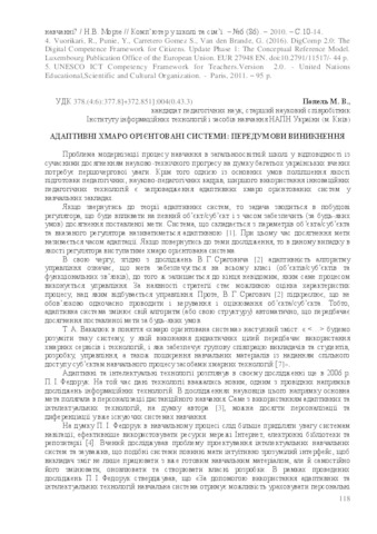 - Попель, М.В. (orcid.org/0000-0002-8087-962X) (2018) Adaptive cloud-oriented systems: the background of origin In: Звітна наукова конференція Інституту інформаційних технологій і засобів навчання НАПН України: Збірник матеріалів наукової конференції . ІІТЗН НАПН України, м. Київ, Україна, pp. 118-120.