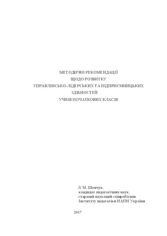 - Шевчук, Л.М. (2017) Methodological recommendations for the development of managerial leadership and entrepreneurial abilities of elementary school students [Teaching Resource] (Unpublished)
