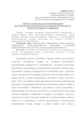 - Дівінська, Н.О. (2017) Professional communication of scientific and pedagogical workers in the context of international communication Nowy Sposób Rozwoju Pedagogika. pp. 118-125.