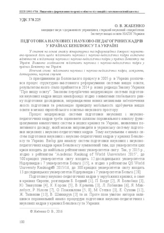 - Жабенко, О.В. (2016) Training of scientific and scientific-pedagogical staff in the Benelux countries and Ukraine. Педагогіка формування творчої особистості у вищій і загальноосвітній школах, 49 (102). pp. 100-111. ISSN 1992-5786
