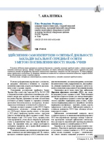 - Федорова, Н.Ф. (orcid.org/0000-0003-4382-4686) (2018) Implementation of Self-Examination of Educational Activities in General Secondary Education Institutions in Order to Improve the Quality of Students’ Knowledge Education and Development of Gifted personality, 2 (69). pp. 93-102. ISSN 2309‑3935