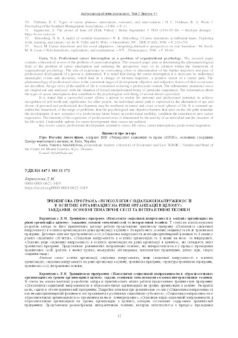 - Карамушка, Л.М. (2018) Training program "Psychology of Organization-Level Social Tension in Educational Organizations": objectives, main thematic sessions and interactive techniques Актуальні проблеми психології. Організаційна психологія. Економічна психологія. Соціальна психологія, 49 (1). pp. 12-20. ISSN 2072-4772