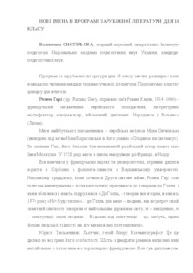 The program for foreign literature for the 10th class significantly expands the range of youth reading through the works of modern literature. The article offers a brief tutorial for new names in the program (Romain Garry, Tumas Transströmer, Mo Yang, Sue Townsend).