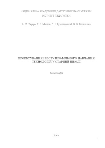 - Тарара, Анатолій Михайлович, Мачача, Тетяна Святославівна, Туташинський, Василь Іванович and Вдовченко, Віктор Володимирович (2017) Designing the content of profile technology education in the senior school Project Report. Педагогічна думка, м. Київ, Україна.