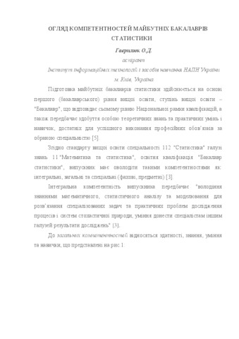 According to the standard of higher education of specialty 112 "Statistics" of the field of knowledge 11 "Mathematics and Statistics", the educational qualification "Bachelor of Statistics", the graduate must master such competencies as: integral, general and special (professional, subject).