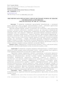In the context of the introduction in the second half of the XXth century the process of the individualization of teaching in secondary school a little-studied aspect is revealed – the contribution to this process of Ukrainian psychologists. The main directions of their research, methods and results of scientific experiments in the field of pedagogical psychology, psychology of personality, social psychology aimed to individualizing education (studying memory, individual differences in mental activity, creativity of students, their interests and abilities, identifying and developing giftedness and creative thinking, introducing the differentiation in education in primary school, the organization of psychological service in secondary school) are outlined. The analysis of such kind of Ukrainian scientists’ studies testified the expansion in the early 1990s of the spectrum of their work in the direction of ensuring the realization of individual needs and interests of schoolchildren. It was proved the gradual formation during the 1980s of a basis for establishing the paradigm of a personality-oriented education, which became one of the most important directions of the educational policy of independent Ukraine.