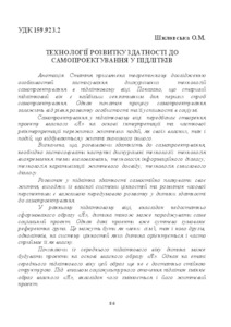 - Шиловська, О.М. (2018) Tehngology development of self-designing abilities in adolescents Актуальні проблеми психології. Т.2. Психологічна герменевтика, 1 (11). pp. 86-98. ISSN 2072-4772