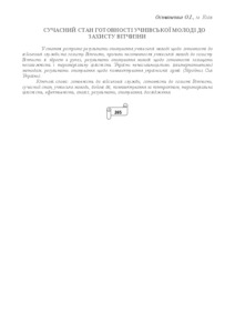 The article presents the results of the survey of student youth about readiness for military service and defense of the Motherland, the reasons for the unpreparedness of student youth to protect the Fatherland with weapons in their hands, the results of the youth survey on readiness to protect Ukraine's non-violent (alternative) methods and the territorial integrity of Ukraine, Army (Armed Forces of Ukraine).