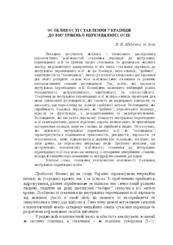 | Keywords: | attitude, psychological peculiarities of an attitude, internally displaced persons |