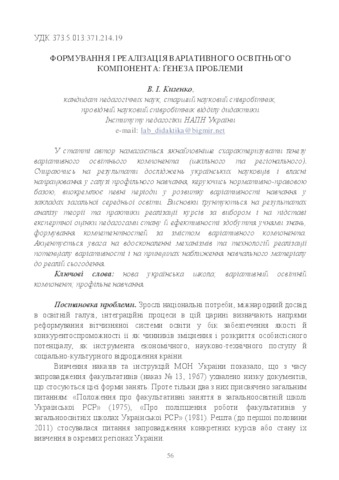 - Кизенко, Василь Іванович (2018) Forming and realization of variability of education component: genesis of probleme Гуманітарний вісник Полтавського національного технічного університету імені Юрія Кондратюка (3). pp. 56-67. ISSN 2521-1579