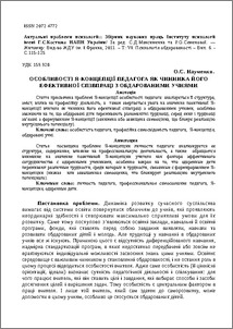 - Науменко, О.С. (2011) Особливості Я-концепції педагога як чинника його ефективної співпраці з обдарованими учнями Актуальні проблеми психології: Збірник наукових праць Інституту психології імені Г.С.Костюка НАПН України - Т.:VI. Психологія обдарованості – Вип. 6. . pp. 115-125. ISSN 2072 - 4772