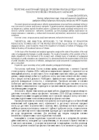 - Васьківська, Галина Олексіївна (2018) Theoretical and analytical approaches to the problem of realization pedagogical technologies of the profile education Дидактика: теорія і практика. pp. 5-10. ISSN ISBN 978-966-644-486-1