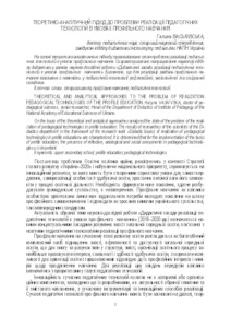 On the basis of the theoretical and analytical approaches analyzed the state of the problem of the realization of pedagogical technologies in profile education. The results of researches of the scientists of the Didactics department in the framework of the research work «Didactic basics of realization of pedagogical technologies in profile education» are characterized. It is determined that for the implementation of the tasks of profile education, the presence of reflective, axiological and social components in pedagogical technologies y is important.