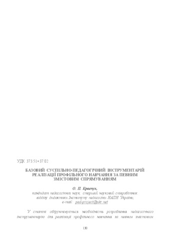Scientists note that the scientific picture of the world that is being studied in school, has many outdated ideas, does not correspond to the current level of knowledge and understanding of the structure of the world, is not a factor in the development of the individual and the basis for determining the personal trajectory of life, dismembered and focused on artificial integration views and knowledge. Modernizing and changing the content of education through the introduction of profile education is a priority area of reform in Ukraine. In pedagogical collectives who already implement the idea of profile education or are preparing for its implementation is an immediate issue of identifying technologies and tools for developing model profile education in a specific institution of education based on available resources. The article substantiates the necessity of developing a pedagogical toolkit for the implementation of profile education with a certain content orientation. They include: 1) methodology for studying educational needs; 2) the concept ofprofile education for a certain content orientation; 3) model of the implementation of a competent approach in the process of designing the relevant content ofprofile education. The concept ofprofile education with a certain content orientation is considered as a scientific-pedagogical and social contract of all participants in the educational process, which helps to systematically model relevant processes in a particular educational institution, to identify each specialist their place in the implementation of the idea of certain content. The identified tools create the foundation for the systematic effective functioning of the technology ofprofile education, and the content ofprofile education becomes a factor in the development not only of the student's personality, but also of the territorial community (both at the local and global levels).