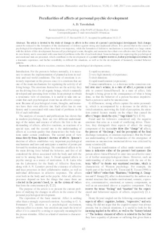 - Tereshchuk, A. D. (2017) Peculiarities of affects at personal psychic development Science and Education a New Dimension. Humanities and Social Sciences, 24 (146). pp. 43-46. ISSN 2308-5258