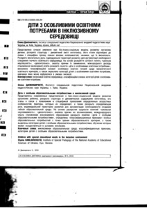 - Данілавічютє, Е.А. (orcid.org/0000-0003-3911-7612) (2018) Сhildren with special educational needs in the inclusive environment Особлива дитина: навчання і виховання, 3 (87). pp. 7-19. ISSN 2312-2781