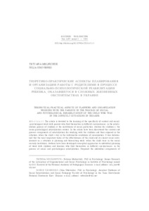 - Melnychuk, Tatyana (orcid.org/0000-0002-5205-9958) and Udovenko, Julia (2018) Theoretical and practical aspects of planning and organization of work with parents in the process of socio-psychological rehabilitation of a child who was in difficult life circumstances in Ukraine Roczniki Teologiczne, 1 (65). pp. 137-150. ISSN 2353-7272