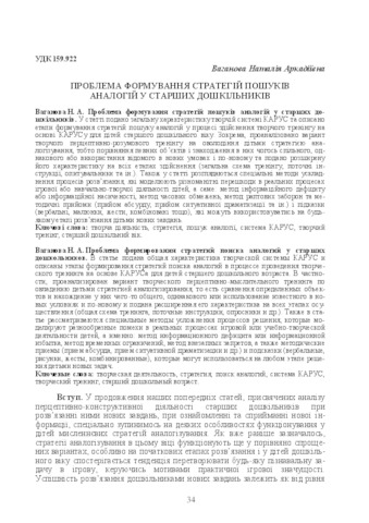 - Ваганова, Н.А. (2018) The problem of analogies searching strategies’ forming in senior preschoolers Актуальні проблеми психології, 24 (12). pp. 34-42. ISSN 2072-4772