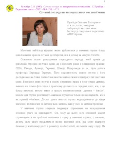 - Кульбіда, С.В. (orcid.org/0000-0002-0194-3495) (2007) Modern views on the use of sign language Педагогічна газета, 4 (153). p. 5.