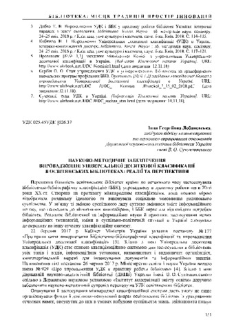Лобановська І. Г. Науково-методичне забезпечення впровадження УДК в освітянських бібліотеках.pdf Download (973kB) | Preview |