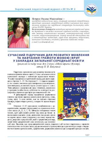 - Петрук, Оксана Миколаївна (orcid.org/0000-0001-5964-0676) (2018) Modern textbook for the development of broadcasting and Hebrew language teaching in general secondary education Український педагогічний журнал, 2. pp. 127-129. ISSN 2411-1317