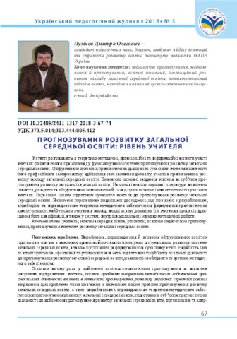 - Пузіков, Дмитро Олегович (orcid.org/0000-0003-2630-6924) (2018) Prediction of the development of general secondary education: teacher level Український педагогічний журнал, 3 (15). pp. 67-74. ISSN 2411-1317