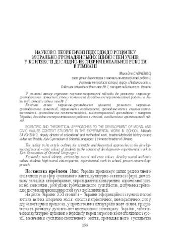 - Савченко, Михайло Пилипович (2017) Scientific and theoretical approaches to the development of moral and civic values context students in the experimental work in school Дидактика: теорія і практика. pp. 155-167.