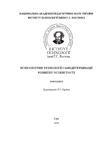 The monograph presents the theoretical and empirical research on the psychological foundations of self-determination of personal development. The included empirical data reveal the objective laws, factors and conditions of a person’s self-determination. Considerable attention is paid to the practical aspects of this research, which will contribute to formation and development of personality potential, a person’s life goals, prospects, positive self-attitude, belief in own capabilities, awareness of own life's way. The other practical aspect is identification of factors and effective psychological techniques stimulating an innate human potential and supporting internal reserves, which ensure a person’s independence in choice-making, self-development and self-realization, contributes to his/her life satisfaction and psychological well-being. The monograph is addressed to scientists researching self-development, self-realization, personal autonomy, self-determination, psychological well-being, psychological hardiness, as well as to psychologists, psychotherapists, heads of organizations, pedagogues working at educational institutions, under- and post-graduate students.