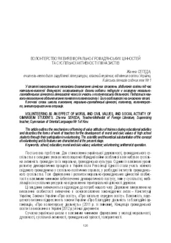 - Сегеда, Жанна Петрівна (2018) Volunteering as an effect of moral and civil values, and social activity of gimnasium students Дидактика: теорія і практика. pp. 126-131. ISSN ISBN 978-966-644-486-1