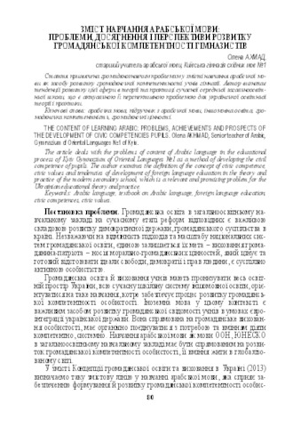 - Ахмад, Олена Рудольфівна (2016) The content of learning Arabic: problems, achievements and prospects of the development of civic competencies pupils Дидактика: теорія і практика, 1. pp. 80-89.