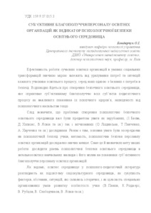 - Бондарчук, О.І. (orcid.org/0000-0003-3920-242X) (2017) Subjective well-being of the personnel of educational organizations as an indicator of the psychological safety of the educational environment In: Організаційна та економічна психологія в Україні: сприяння регіональному розвитку : тези ХІІ Міжнародної науково-практичної конференції з організаційної та економічної психології (1-3 червня, 2017 р., м. Харків) . Видавництво "Гуманітарний центр", м. Київ, Україна - м. Харків, Україна, pp. 65-66. ISBN 978-617-7528-36-3