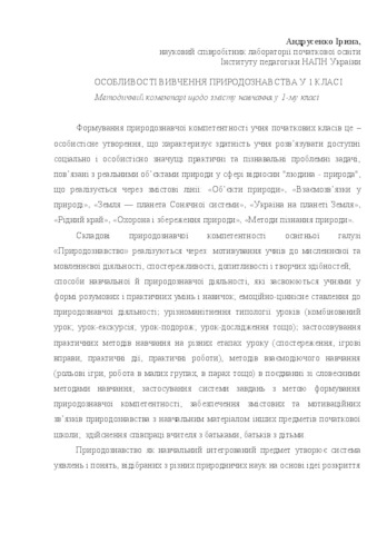 - Андрусенко, Ірина Володимирівна (2012) Features of the study of natural science in grade 1 Початкова школа, 14-15 (638-63). pp. 14-15. ISSN 0131-5358