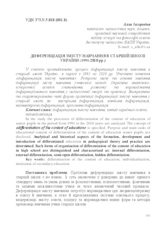 - Загородня, Алла Анатоліївна (orcid.org/0000-0003-2418-1670) (2018) Differentiation of the content of education in the high school of Ukraine (1991-2010) Professional training in the measurement of new educational realities: materials All-Ukrainian scientific-practical conference with international participation, Ivano-Frankivsk, October 11-12, 2018, 1. pp. 141-148.